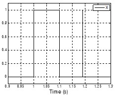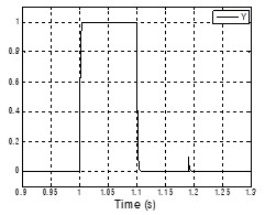 這里討論一階低通濾波器的一種應用。左圖為一階低通濾波器的信號輸入,在1s的時候,有一個長度為100ms的有用脈沖信號進入,在1.19s時,有一個長度為0.1ms的干擾信號進入。
